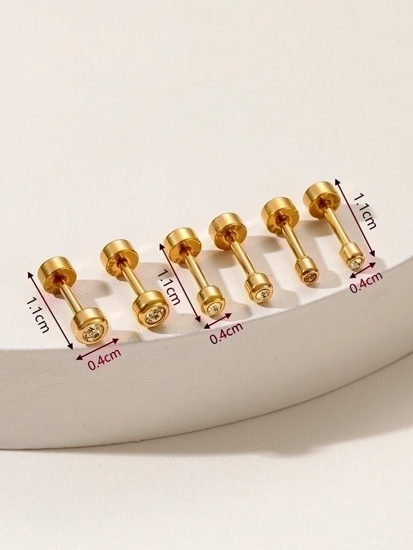 3 Pairs Minimalist Solid Color Inlay Stainless Steel Rhinestones 18K Gold Plated Ear Studs