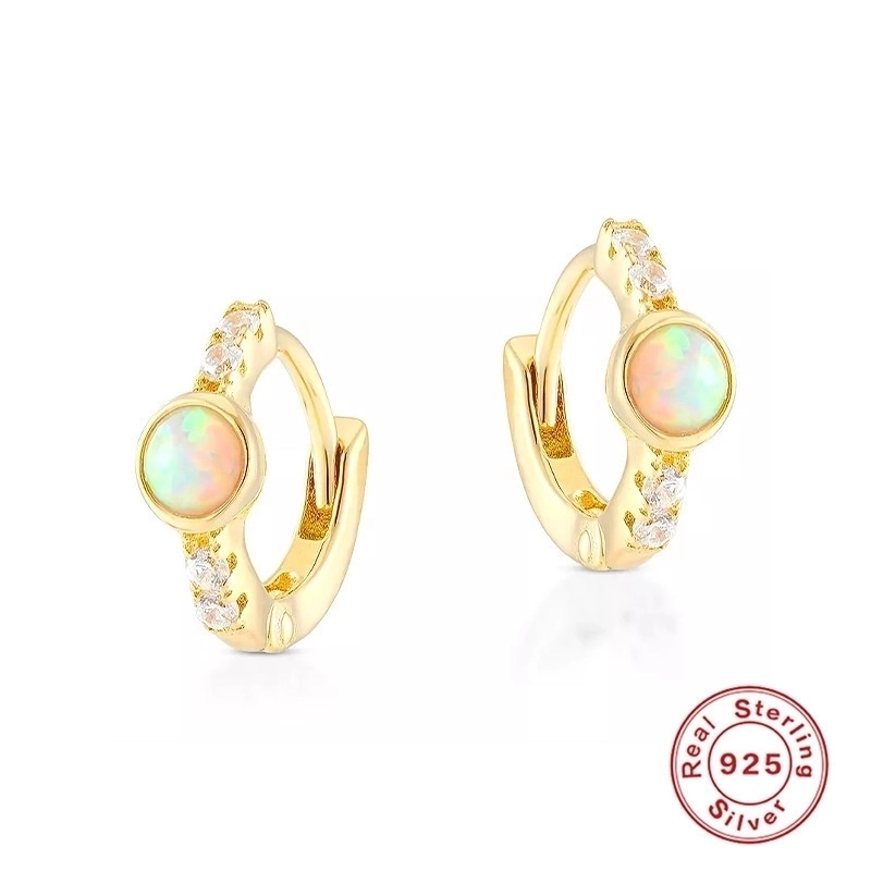 925 Sterling Silver Opal Zircon Geometric Earrings