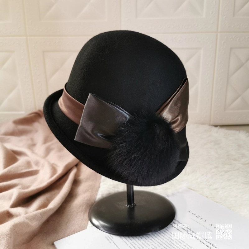 Autumn And Winter Wool Top Hat Female Fur Ball Curling Felt Hat Felt Hat Beret Woolen Basin Hat Fisherman Hat Painter Hat