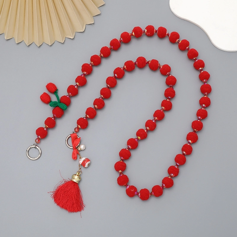 Cute Sweet Geometric Plush Beaded Tassel Mobile Phone Chain