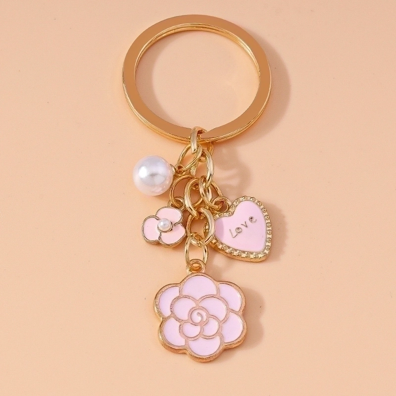 Cute Sweet Heart Shape Flower Alloy Resin Keychain