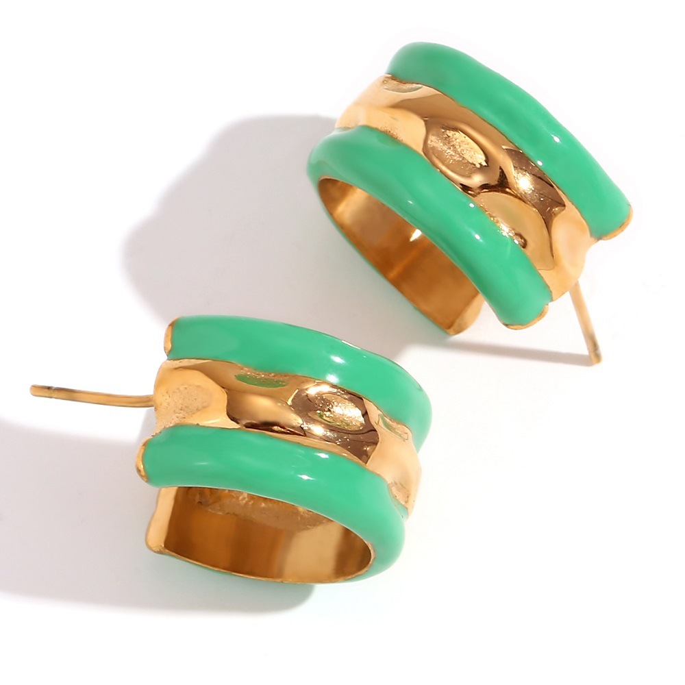 Color- Water Ripple Summer Contrast Drop Oil Earrings-golden Green