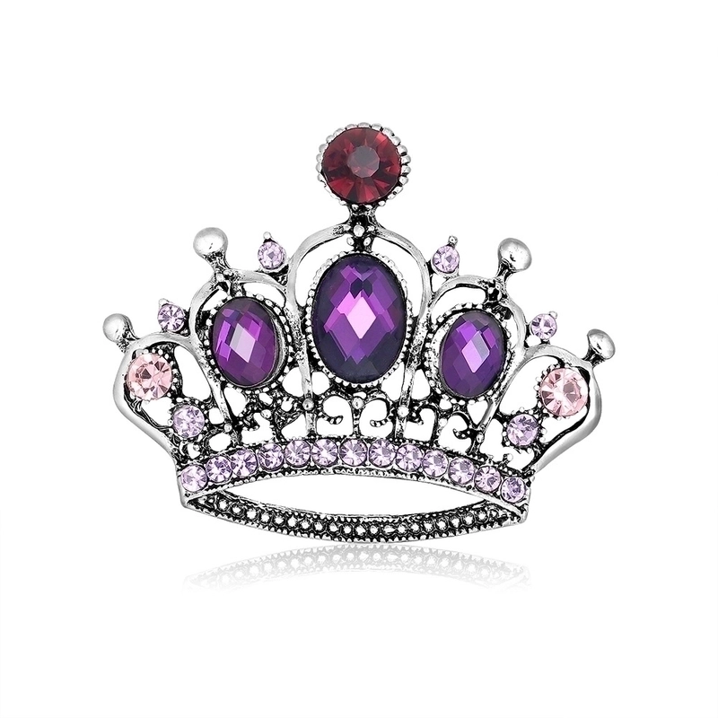 Fashion Pin Crown Alloy Plating Inlay Rhinestones Women'S Brooches