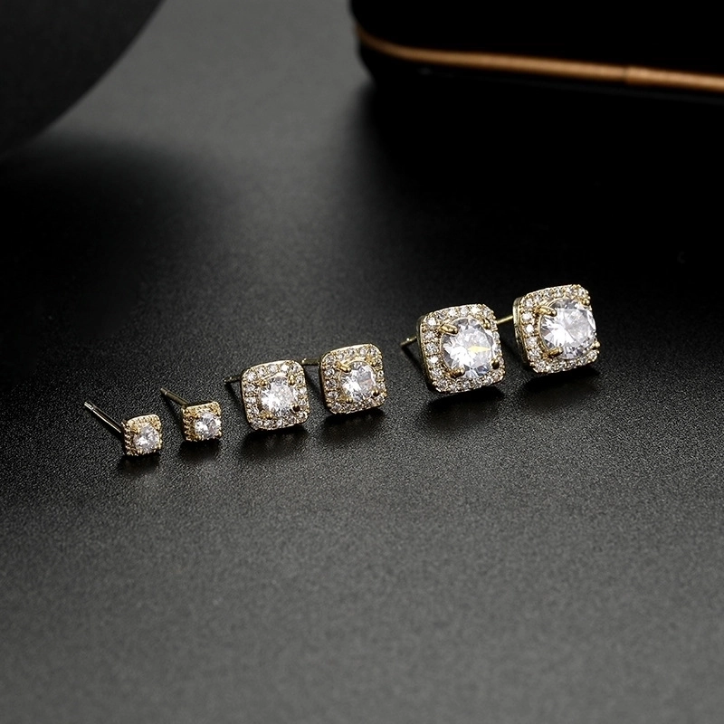 Fashion Square Copper Ear Studs Inlay Zircon Copper Earrings 3 Pairs