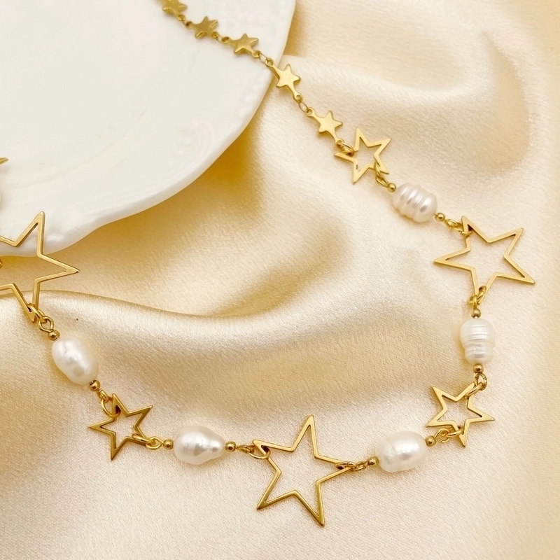 Fashion Star Stainless Steel Inlay Artificial Pearls Necklace
