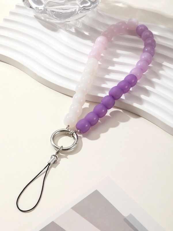 Handmade Classic Style Round Beaded Alloy Plastic Mobile Phone Chain Keychain