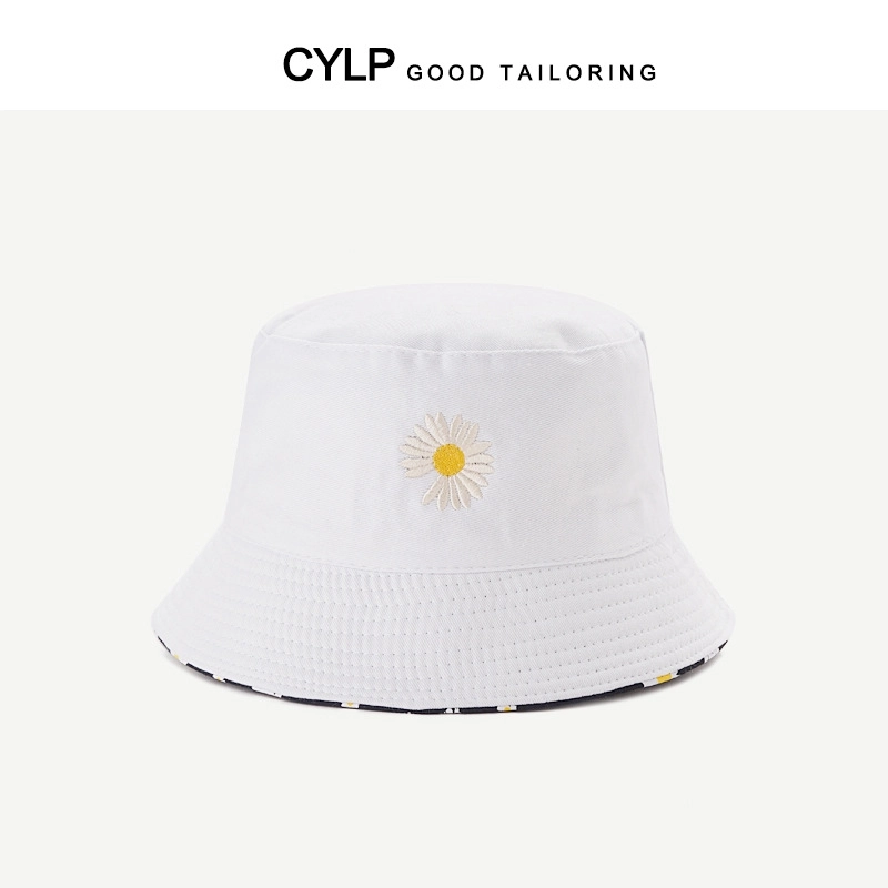 Hat Women's Summer Double-sided Sun Hat Korean Fashion Daisy Embroidered Fisherman Hat Men's Outdoor Sun Protection Basin Hat