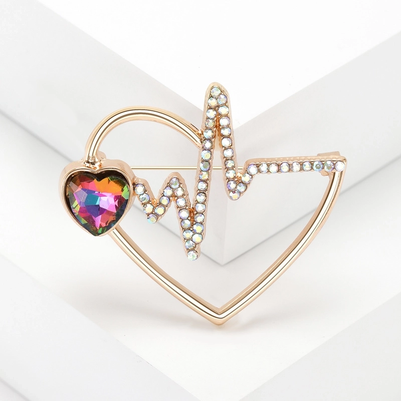 Minimalist Pin Electrocardiogram Heart Shape Alloy Inlay Rhinestones Women's Brooches