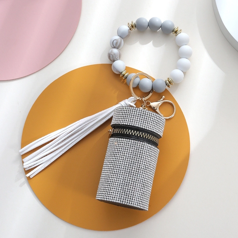 2 Pieces Minimalist Round Pu Leather Silica Gel Beaded Keychain