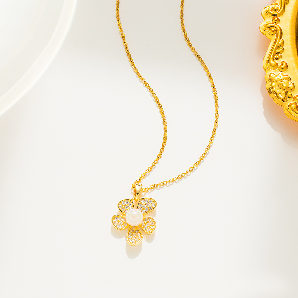 Color- 556 Pearl Floret Necklace Gold