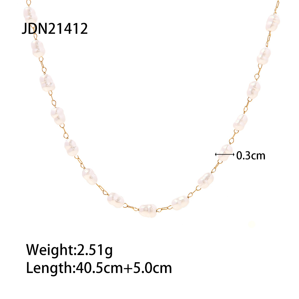 IG Style Pearl Geometric Stainless Steel 18K Gold Plated Necklaces