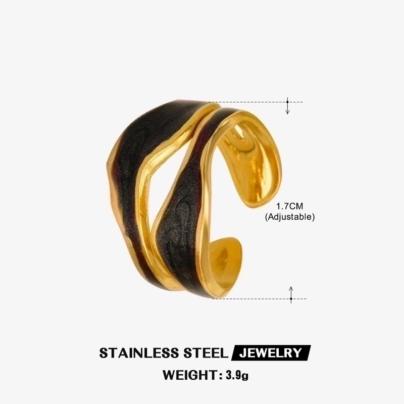 304 Stainless Steel 18K Gold Plated Streetwear Enamel Plating Irregular Resin Open Rings