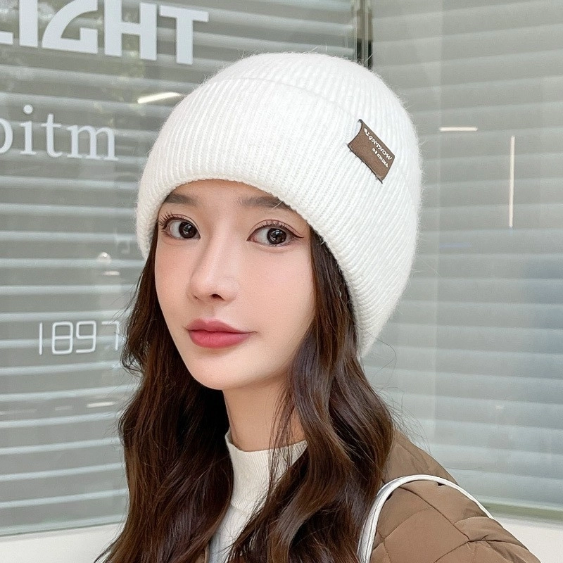 Thickened Knitted Wool Hat Women's Winter Warm Fleece-lined Pullover Hat Cold-proof Windproof Toe Cap Cold Hat Ear Protection Hat