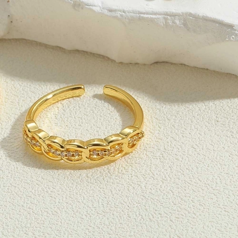 Vintage Style Minimalist Commute Round Water Droplets Rectangle Copper Plating Inlay Zircon 14k Gold Plated Open Rings